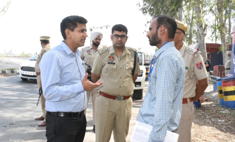 जालंधर, एच एस चावला। लोक सभा चुनाव- 2024 के मद्देनज़र ज़िला प्रशासन ने अंत्र- ज़िला लगाए गए नाको, जिनकी आज ज़िला चुनाव अधिकारी-कम-डिप्टी कमिश्नर डा.हिमांशु अग्रवाल और एस.एस.पी.जालंधर (देहाती) अंकुर गुप्ता ने अचानक चैकिंग की ।