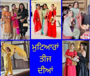 जालंधर, एच एस चावला। जालंधर के स्थानीय होटल में महिलाओं द्वारा तीज के त्यौहार के उपलक्ष्य में “मुटियारां तीज दीयां” कार्यक्रम का आयोजन किया गया, जिसमें सोनिया बाहरी व जसरूप शेरगिल ने विशेष रूप से शिरकत की।