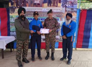 जालंधर, एच एस चावला। डायरेक्टर जनरल एन.सी.सी. की अंडर 15 हॉकी टीम को 2 पंजाब एन.सी.सी. बटालियन जालन्धर में सम्मानित किया गया, जो प्री.क्वार्टर फाइनल में विजय रहे। कैड्टो को नेहरू कप मैनेजमेंट दिल्ली के सर्टिफिकेट, ट्रैकसूट और हॉकी बांटे गए। कर्नल विनोद जोशी ने बताया अंडर 15 टीम के 16 खिलाड़ियों में से कैडेट बिमलेश, कैडेट कीरतप्रीत सिंह और कैडेट पवन कुमार को विभिन्न मैचों में बेहतरीन प्रदर्शन के लिए हॉकी कप के डायरेक्टर द्वारा मैच के सर्वश्रेष्ठ खिलाड़ी के रूप में सर्टिफिकेट और हॉकी पुरस्कार स्वरूप दिए गए।