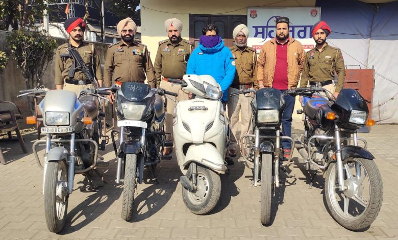 ਜਲੰਧਰ, ਐਚ ਐਸ ਚਾਵਲਾ। ਜਲੰਧਰ ਕਮਿਸ਼ਨਰੇਟ ਪੁਲਿਸ ਵਲੋਂ ਸ਼ਹਿਰ ਵਿੱਚ ਵਾਹਨ ਚੋਰੀ ਕਰਨ ਵਾਲਿਆਂ ਖਿਲਾਫ਼ ਚਲਾਈ ਮੁਹਿੰਮ ਦੌਰਾਨ ਵੱਡੀ ਸਫ਼ਲਤਾ ਹਾਸਿਲ ਕਰਦਿਆਂ ਇਕ ਵਿਅਕਤੀ ਨੂੰ ਗ੍ਰਿਫ਼ਤਾਰ ਕਰਕੇ ਪੰਜ ਚੋਰੀ ਦੇ ਮੋਟਰਸਾਈਕਲ ਬਰਾਮਦ ਕੀਤੇ ਗਏ ਹਨ।