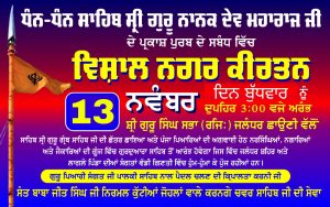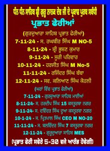 7 ਨਵੰਬਰ ਤੋਂ 12 ਨਵੰਬਰ ਤੱਕ ਪ੍ਰਭਾਤ ਫੇਰੀਆਂ, 13 ਨਵੰਬਰ ਨੂੰ ਵਿਸ਼ਾਲ ਨਗਰ ਕੀਰਤਨ ਅਤੇ 15 ਨਵੰਬਰ ਨੂੰ ਸਜਾਏ ਜਾਣਗੇ ਧਾਰਮਿਕ ਦੀਵਾਨ