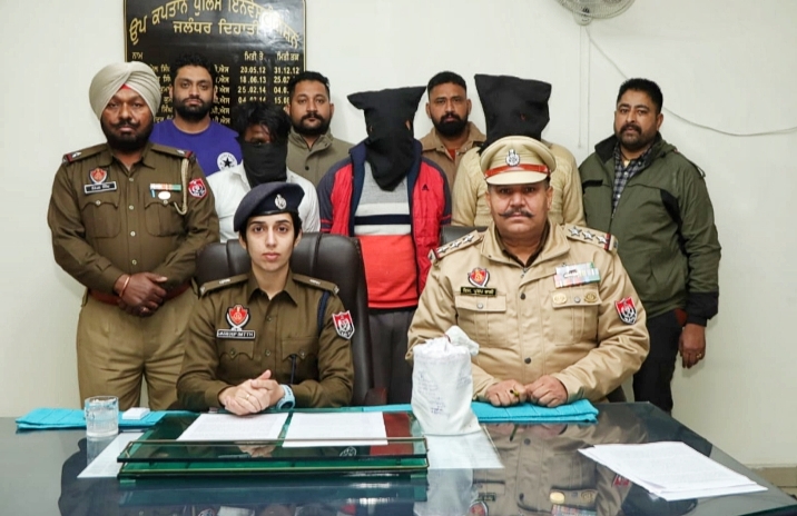 ਜਲੰਧਰ, ਐਚ ਐਸ ਚਾਵਲਾ। ਸ੍ਰੀ ਮੁਖਵਿੰਦਰ ਸਿੰਘ ਭੁੱਲਰ ਪੀ.ਪੀ.ਐਸ ਸੀਨੀਅਰ ਪੁਲਿਸ ਕਪਤਾਨ, ਜਲੰਧਰ ਦਿਹਾਤੀ ਜੀ ਦੇ ਦਿਸ਼ਾ ਨਿਰਦੇਸ਼ਾ ਅਨੁਸਾਰ ਸਮਾਜ ਦੇ ਮਾੜੇ ਅਨਸਰਾ/ਨਸ਼ਾ ਤਸਕਰਾ ਖਿਲਾਫ ਚਲਾਈ ਗਈ ਵਿਸ਼ੇਸ਼ੇ ਮੁਹਿੰਮ ਤਹਿਤ ਸ੍ਰੀਮਤੀ ਜਸਰੂਪ ਕੌਰ ਆਈ.ਪੀ.ਐਸ. ਪੁਲਿਸ ਕਪਤਾਨ, ਇਨਵੈਸਟੀਗੇਸ਼ਨ ਜਲੰਧਰ ਦਿਹਾਤੀ ਅਤੇ ਸ੍ਰੀ ਲਖਵੀਰ ਸਿੰਘ ਪੀ.ਪੀ.ਐਸ ਉਪ-ਪੁਲਿਸ ਕਪਤਾਨ, ਇਨਵੈਸਟੀਗੇਸ਼ਨ ਜਲੰਧਰ ਦਿਹਾਤੀ ਦੀ ਅਗਵਾਈ ਹੇਠ ਇੰਸਪੈਕਟਰ ਪੁਸ਼ਪ ਬਾਲੀ ਇੰਚਾਰਜ ਸੀ.ਆਈ.ਏ ਸਟਾਫ ਜਲੰਧਰ ਦਿਹਾਤੀ ਦੀ ਪੁਲਿਸ ਟੀਮ ਵੱਲੋ ਨਸ਼ਾ ਸਮਗਲਰਾਂ ਵਿਰੁੱਧ ਕਾਰਵਾਈ ਕਰਦੇ ਸਾਬਕਾ ਸਰਪੰਚ ਦੇ ਪਤੀ ਸਮੇਤ ਤਿੰਨ ਨਸ਼ਾ ਤਸਕਰਾ ਨੂੰ ਕਾਬੂ ਕਰਕੇ ਉਹਨਾ ਪਾਸੋ 650 ਗ੍ਰਾਮ ਹੈਰੋਇਨ ਬ੍ਰਾਮਦ ਕੀਤੀ ਹੈ। ਜੋ ਇਹ ਗੈਂਗ ਪਾਕਿਸਤਾਨ ਤੋ ਡਰੋਨ ਰਾਹੀਂ ਹੈਰੋਇਨ ਮੰਗਵਾ ਕੇ ਅੱਗੇ ਵੱਖ ਵੱਖ ਥਾਵਾਂ ਤੇ ਸਪਲਾਈ ਕਰਦੇ ਸੀ।