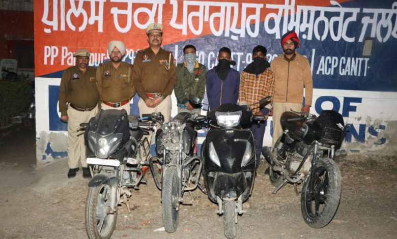ਜਲੰਧਰ ਕਮਿਸ਼ਨਰੇਟ ਪੁਲਿਸ ਨੇ ਚੋਰੀ ਦੀਆਂ ਵਾਰਦਾਤਾਂ ‘ਚ ਸ਼ਾਮਲ 3 ਵਿਅਕਤੀਆਂ ਨੂੰ ਕੀਤਾ ਕਾਬੂ, ਚੋਰੀ ਹੋਏ 4 ਵਾਹਨ ਕੀਤੇ ਬਰਾਮਦ