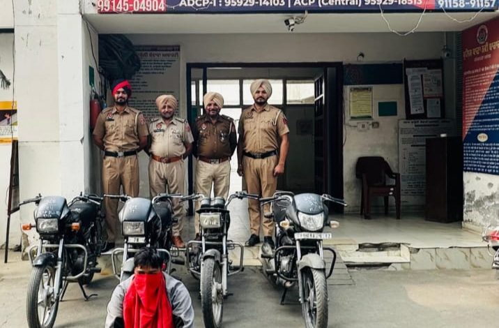 ਜਲੰਧਰ, ਐਚ ਐਸ ਚਾਵਲਾ। ਪੁਲਿਸ ਕਮਿਸ਼ਨਰ ਸ੍ਰੀ ਸਵਪਨ ਸ਼ਰਮਾ ਦੀ ਅਗਵਾਈ ਹੇਠ ਜਲੰਧਰ ਕਮਿਸ਼ਨਰੇਟ ਪੁਲਿਸ ਨੇ ਇੱਕ ਵੱਡੀ ਸਫਲਤਾ ਹਾਸਲ ਕਰਦੇ ਹੋਏ ਇੱਕ ਵਿਅਕਤੀ ਨੂੰ ਗ੍ਰਿਫਤਾਰ ਕਰਕੇ ਉਸਦੇ ਕੋਲੋਂ 4 ਚੋਰੀ ਦੇ ਮੋਟਰਸਾਈਕਲ ਬਰਾਮਦ ਕੀਤੇ ਹਨ।