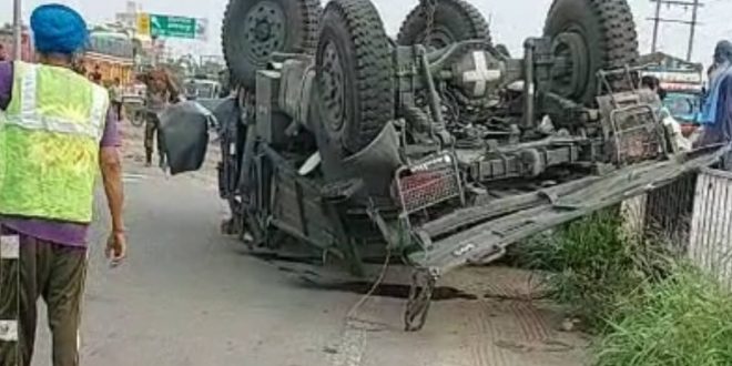 ਜਲੰਧਰ ‘ਚ ਫੌਜ ਦੇ ਟਰੱਕ ਅਤੇ ਦੂਜੇ ਟਰੱਕ ਵਿਚਾਲੇ ਭਿਆਨਕ ਟੱਕਰ, ਹਾਈਵੇ ‘ਤੇ ਪਲਟਿਆ ਫੌਜੀ ਟਰੱਕ, 5 ਜਵਾਨ ਜ਼ਖ਼ਮੀ