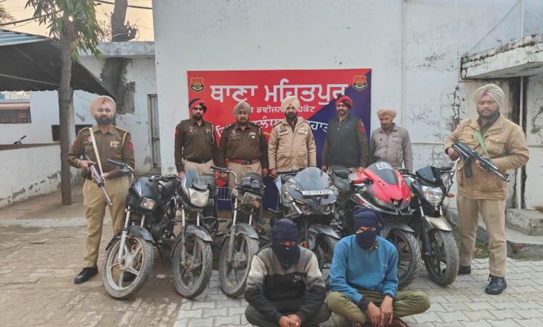ਜਲੰਧਰ, ਐਚ ਐਸ ਚਾਵਲਾ। ਸੰਗਠਿਤ ਵਾਹਨ ਚੋਰੀ ਵਿਰੁੱਧ ਇੱਕ ਵੱਡੀ ਸਫਲਤਾ ਵਿੱਚ, ਜਲੰਧਰ ਦਿਹਾਤੀ ਪੁਲਿਸ ਨੇ ਇੱਕ ਅੰਤਰ-ਜ਼ਿਲ੍ਹਾ ਮੋਟਰਸਾਈਕਲ ਚੋਰੀ ਕਰਨ ਵਾਲੇ ਗਿਰੋਹ ਦਾ ਪਰਦਾਫਾਸ਼ ਕੀਤਾ ਹੈ, ਜਿਸ ਵਿੱਚ 2 ਮੈਂਬਰਾਂ ਨੂੰ ਗ੍ਰਿਫ਼ਤਾਰ ਕੀਤਾ ਗਿਆ ਹੈ ਅਤੇ ਛੇ ਚੋਰੀ ਹੋਏ ਮੋਟਰਸਾਈਕਲ ਬਰਾਮਦ ਕੀਤੇ ਗਏ ਹਨ। ਗ੍ਰਿਫ਼ਤਾਰ ਕੀਤੇ ਗਏ ਮੁਲਜ਼ਮਾਂ ਦੀ ਪਛਾਣ ਸੰਦੀਪ ਸਿੰਘ ਉਰਫ਼ ਸੋਨੀ ਅਤੇ ਤਰਜਿੰਦਰ ਸਿੰਘ ਉਰਫ਼ ਕਾਕਾ ਵਜੋਂ ਹੋਈ ਹੈ।