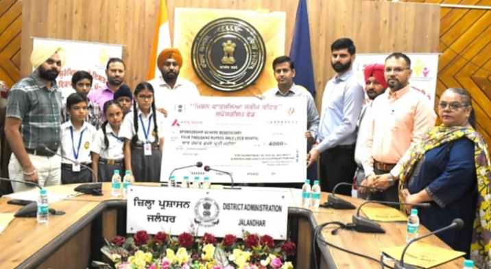 ਜਲੰਧਰ, ਐਚ ਐਸ ਚਾਵਲਾ। ਜ਼ਿਲ੍ਹਾ ਸਮਾਜਿਕ ਸੁਰੱਖਿਆ ਅਤੇ ਇਸਤਰੀ ਤੇ ਬਾਲ ਵਿਕਾਸ ਵਿਭਾਗ ਵੱਲੋਂ ਵੀਰਵਾਰ ਨੂੰ ਜ਼ਿਲ੍ਹਾ ਪੱਧਰੀ ਸਪਾਂਸਰਸ਼ਿਪ ਦਿਵਸ ਸਬੰਧੀ ਕਰਵਾਏ ਗਏ ਪ੍ਰੋਗਰਾਮ ਦੌਰਾਨ ਡਿਪਟੀ ਕਮਿਸ਼ਨਰ ਡਾ. ਹਿਮਾਂਸ਼ੂ ਅਗਰਵਾਲ ਵੱਲੋਂ ਬੇਸਹਾਰਾ ਅਤੇ ਜ਼ਰੂਰਤਮੰਦ ਬੱਚਿਆਂ ਨੂੰ ਮਿਸ਼ਨ ਵਾਤਸੱਲਿਆ ਸਕੀਮ ਤਹਿਤ ਸਪਾਂਸਰਸ਼ਿਪ ਦੇ ਚੈੱਕ ਵੰਡੇ ਗਏ।