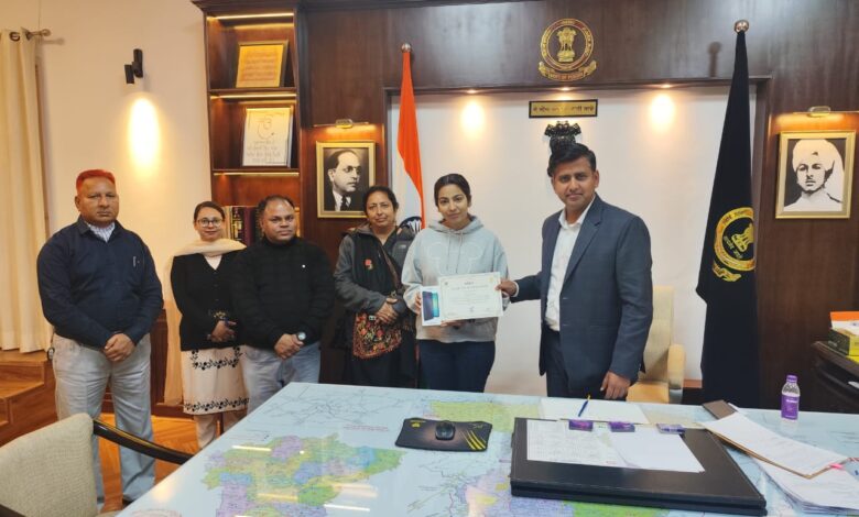 ਜਲੰਧਰ, ਐਚ ਐਸ ਚਾਵਲਾ। ਡਿਪਟੀ ਕਮਿਸ਼ਨਰ-ਕਮ-ਜ਼ਿਲ੍ਹਾ ਚੋਣ ਅਫ਼ਸਰ ਡਾ. ਹਿਮਾਂਸ਼ੂ ਅਗਰਵਾਲ ਵੱਲੋਂ ਅੱਜ ਪੰਜਾਬ ਇਲੈਕਸ਼ਨ ਕੁਇੱਜ਼-2025 ਸਬੰਧੀ ਕਰਵਾਏ ਗਏ ਆਨਲਾਈਨ ਮੁਕਾਬਲੇ ਵਿੱਚ ਜ਼ਿਲ੍ਹਾ ਜਲੰਧਰ ’ਚੋਂ ਪਹਿਲਾ ਸਥਾਨ ਹਾਸਲ ਕਰਨ ਵਾਲੀ ਵਿਦਿਆਰਥਣ ਦਾ ਸਨਮਾਨ ਕੀਤਾ ਗਿਆ।