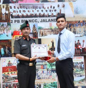ਜਲੰਧਰ, ਐਚ ਐਸ ਚਾਵਲਾ। ਨੈਸ਼ਨਲ ਡਿਫੈਂਸ ਅਕੈਡਮੀ, ਪੂਨਾ ਵਿੱਚ ਆਰਮੀ ਪਬਲਿਕ ਸਕੂਲ ਦੇ NCC ਕੈਡਿਟਾਂ ਦੀ ਅੰਤਿਮ ਚੋਣ ਲਈ 2 ਪੰਜਾਬ ਐਨਸੀਸੀ ਬਟਾਲੀਅਨ ਹੈਡਕੁਆਰਟਰ ਵਿਖੇ ਇੱਕ ਸਨਮਾਨ ਸਮਾਰੋਹ ਦਾ ਆਯੋਜਨ ਕੀਤਾ। ਐਨਸੀਸੀ ਕੈਡਿਟਾਂ ਨੇ ਪਹਿਲਾਂ ਯੂਪੀਐਸਸੀ ਲਿਖਤੀ ਪ੍ਰੀਖਿਆ ਪਾਸ ਕੀਤੀ। ਇਸ ਤੋਂ ਬਾਅਦ ਉਨ੍ਹਾਂ ਨੇ 5 ਦਿਨਾਂ ਐਸਐਸਬੀ ਪ੍ਰੀਖਿਆ ਪਾਸ ਕੀਤੀ। ਇਸ ਤੋਂ ਬਾਅਦ ਉਨ੍ਹਾਂ ਨੇ ਵਿਸਤ੍ਰਿਤ ਮੈਡੀਕਲ ਪ੍ਰੀਖਿਆ ਪਾਸ ਕੀਤੀ ਅਤੇ ਹੁਣ ਉਹ ਨੈਸ਼ਨਲ ਡਿਫੈਂਸ ਅਕੈਡਮੀ ਪੂਨਾ ਵਿਖੇ 3 ਸਾਲਾਂ ਦੀ ਸਖ਼ਤ ਸਿਖਲਾਈ ਲਈ ਤਿਆਰ ਹਨ।
