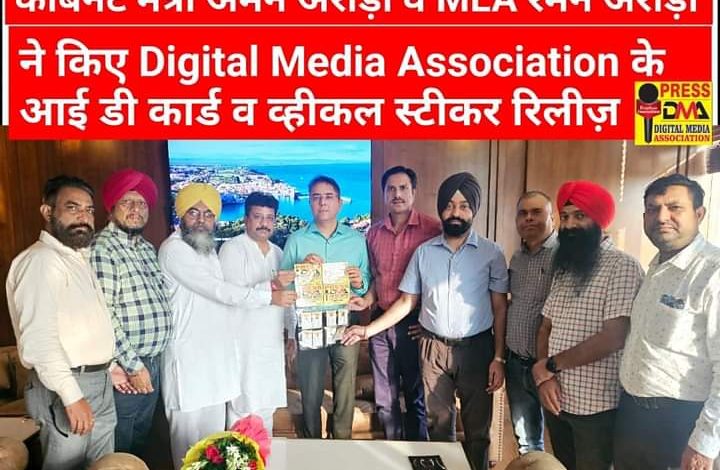 इस मौके श्री अमन अरोड़ा और श्री रमन अरोड़ा ने डिजिटल मीडिया एसोसिएशन (रजि.) के सदस्यों के लिए आई डी कार्ड और व्हीकल स्टीकर को अपने कर कमलों द्वारा रिलीज करते हुए पत्रकारों को जीवन में आगे बढ़ने के लिए शुभकामनाएं दी। इस अवसर पर पत्रकारों ने श्री अमन अरोड़ा को डिजिटल मीडिया से जुड़े हुए पत्रकारों को आ रही विभिन्न प्रकार की समस्याओं से अवगत करवाया और उन्हें जल्द से जल्द हल करवाने की मांग की।