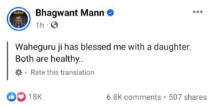 ਮੁੱਖ ਮੰਤਰੀ ਭਗਵੰਤ ਮਾਨ ਦੇ ਘਰ ਆਈਆਂ ਖੁਸ਼ੀਆਂ, ਪਤਨੀ ਡਾ. ਗੁਰਪ੍ਰੀਤ ਕੌਰ ਨੇ ਦਿੱਤਾ ਬੱਚੇ ਨੂੰ ਜਨਮ