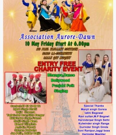 ਪੈਰਿਸ, (PRIME INDIAN NEWS) :- ਯੌਰਪ ਦੀ ਜਾਣੀ ਪਹਿਚਾਣੀ ਸਮਾਜ ਸੇਵੀ ਸੰਸਥਾ ਔਰਰ-ਡਾਨ ਵਲੋਂ “ਵਿਸਾਖੀ ਮੇਲਾ (ਪੈਰਿਸ)” ਕੱਲ 10 ਮਈ ਸ਼ੁੱਕਰਵਾਰ ਨੂੰ ਸ਼ਾਮ 6.00 ਵਜੇ , 119 ਪੌਲ ਵੈਲੈਂਟ ਕੂਟਰੀਅਰ , 93120 ਲਾ-ਕੋਰਨਵ , ਗੀਅ ਮੋਕੇਟ ਹਾਲ ਵਿਖੇ ਕਰਵਾਇਆ ਜਾ ਰਿਹਾ ਹੈ।