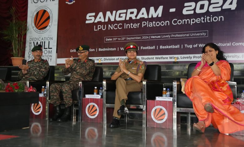जालंधर, एच एस चावला। लवली प्रोफेशनल यूनिवर्सिटी के तत्वाद्यान में एनसीसी की 10 प्लाटून में इंटर प्लाटून प्रतियोगिता-संग्राम 2024 का शुभारंभ ब्रिगेडियर अजय तिवारी, सेना मेडल, ग्रुप कमांडर एनसीसी जालंधर ग्रुप द्वारा किया गया। ड्रिल, खेलकूद, सांस्कृतिक प्रतियोगिताएं, वाद विवाद और त्वरित भाषण चार दिनों तक चलेंगे। ब्रिगेडियर तिवारी ने गार्ड ऑफ ऑनर की सलामी ली। कर्नल (डॉ) रश्मि मित्तल, वाइस चांसलर लवली प्रोफेशनल यूनिवर्सिटी और कर्नल विनोद जोशी, कमान अधिकारी, 2 पंजाब एनसीसी बटालियन भी गार्ड ऑफ ऑनर में शामिल रहे। एनसीसी और एलपीयू के ध्वजारोहण के बाद एनसीसी और एलपीयू गान, सभी एनसीसी कैडेटस ने गाया। ब्रिगेडियर अजय तिवारी और कर्नल (डॉ) रश्मि मित्तल ने संग्राम प्रतियोगिता की ट्रॉफीयों का अनावरण किया।