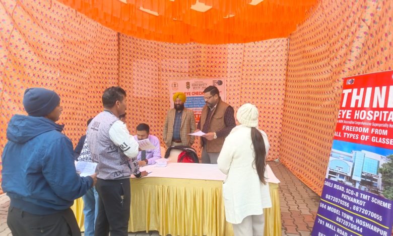 ਜਲੰਧਰ, ਐਚ ਐਸ ਚਾਵਲਾ। ਸੜਕ ਹਾਦਸਿਆਂ ਨੂੰ ਰੋਕਣ ਅਤੇ ਆਮ ਲੋਕਾਂ ਵਿੱਚ ਸੜਕ ਸੁਰੱਖਿਆ ਪ੍ਰਤੀ ਜਾਗਰੂਕਤਾ ਵਧਾਉਣ ਦੇ ਉਦੇਸ਼ ਨਾਲ ਮਨਾਏ ਜਾ ਰਹੇ ਸੜਕ ਸੁਰੱਖਿਆ ਮਹੀਨਾ-2026 ਤਹਿਤ ਸਥਾਨਕ ਡਰਾਇਵਿੰਗ ਟਰੈਕ ਵਿਖੇ ਰੀਜ਼ਨਲ ਟਰਾਂਸਪੋਰਟ ਦਫ਼ਤਰ ਵਲੋਂ ਅੱਖਾਂ ਦਾ ਵਿਸ਼ੇਸ਼ ਜਾਂਚ ਕੈਂਪ ਲਗਾਇਆ ਗਿਆ, ਜਿਸ ਦੌਰਾਨ 150 ਲੋਕਾਂ ਦੀਆਂ ਅੱਖਾਂ ਦੀ ਜਾਂਚ ਕੀਤੀ ਗਈ।