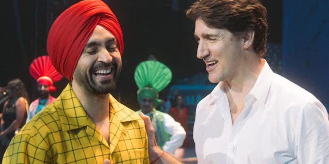 ਕੈਨੇਡਾ ਦੇ ਸ਼ਹਿਰ ਟੋਰਾਂਟੋ ਦੇ ਰਾਜਰਸ ਸੈਂਟਰ ਸਟੇਡੀਅਮ ਵਿੱਚ ਪੰਜਾਬੀ ਗਾਇਕ ਦਿਲਜੀਤ ਦੋਸਾਂਝ ਦੇ ਕੰਸਰਟ ਦੌਰਾਨ ਕੈਨੇਡੀਅਨ ਪ੍ਰਧਾਨ ਮੰਤਰੀ ਜਸਟਿਨ ਟਰੂਡੋ ਸਰਪ੍ਰਾਈਜ਼ ਵਿਜ਼ਟ ਲਈ ਪਹੁੰਚੇ ਅਤੇ ਉਨ੍ਹਾਂ ਨਾਲ ਮੁਲਾਕਾਤ ਕੀਤੀ। ਕੈਨੇਡੀਅਨ PM ਨੂੰ ਸਟੇਜ ‘ਤੇ ਦੇਖ ਕੇ ਦਿਲਜੀਤ ਨੇ ਪਹਿਲਾਂ ਉਨ੍ਹਾਂ ਦਾ ਹੱਥ ਜੋੜ ਕੇ ਸਵਾਗਤ ਕੀਤਾ ਅਤੇ ਬਾਅਦ ਵਿੱਚ PM ਟਰੂਡੋ ਨੂੰ ਗਲੇ ਲਗਾਇਆ।