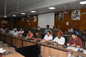 आज यहाँ ज़िला प्रशासकीय कंपलैक्स में मीटिंग दौरान डिप्टी कमिश्नर ने अलग- अलग विभागों के आधिकारियों को आपसी तालमेल के साथ काम करने पर ज़ोर दिया और किसी भी असुखद घटना को घटने से रोकने के लिए मुस्तैद रहने के आदेश दिए।