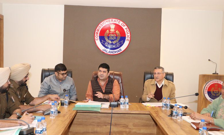 ਪੁਲਿਸ ਕਮਿਸ਼ਨਰ, ਜਲੰਧਰ ਵੱਲੋਂ ਅੱਜ ਕਮਿਸ਼ਨਰੇਟ ਪੁਲਿਸ, ਜਲੰਧਰ ਦੇ ਦਫ਼ਤਰ ਵਿਖੇ ਅਪਰਾਧ ਕੰਟਰੋਲ ਸਬੰਧੀ ਇੱਕ ਵਿਆਪਕ ਮੀਟਿੰਗ ਬੁਲਾਈ ਗਈ। ਮੀਟਿੰਗ ਵਿੱਚ ਡਿਪਟੀ ਕਮਿਸ਼ਨਰ ਆਫ਼ ਪੁਲਿਸ, ਸਹਾਇਕ ਪੁਲਿਸ ਕਮਿਸ਼ਨਰਾਂ ਅਤੇ ਸ਼ਹਿਰ ਦੇ ਹੋਰ ਪੁਲਿਸ ਅਧਿਕਾਰੀਆਂ ਸਮੇਤ ਸੀਨੀਅਰ ਅਧਿਕਾਰੀ ਹਾਜ਼ਰ ਸਨ।